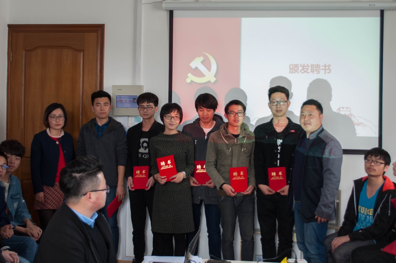 启动仪式上,首先,由蓝维春老师向参与仪式的本科生、研究生“合伙人”们介绍了“学业合伙人”计划的由来、目的以及开展流程等基本情况。随后,蓝维春老师和赵卫花老师一起为参与本次计划的研究生党员代表颁发聘书,勉励他们充分发挥员工党员和作为研究生前辈的先进性、模范性,利用自身优势,为学弟学妹提供帮助。