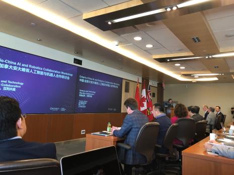 2018 Ontario-China AI and Robotics Collaboration Workshop于2018年5月2日起在加拿大多伦多举行,本次安大略-中国人工智能(AI)及机器人合作研讨会由中国驻安大略总领馆和加拿大安大略省科技厅联合组织。来自加拿大、中国双方的学界和产业界100多人参加了此次会议,包括中国科公司、北京大学、清华大学、浙江大学和太阳成集团tyc33455cc官网等中方研究机构,安大略省多伦多大学、约克大学、怀尔逊大学、滑铁卢大学和贵湖大学等加拿大人工智能及机器人研究机构,加、中两方在会议上交流的论文涉及人工智能及机器人行业研究和发展的各个领域。