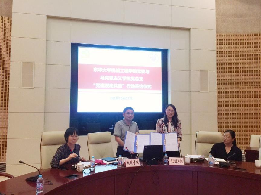 为深入贯彻落实党的十九大精神,认真贯彻落实全国高校思想政治工作会议精神,以党建共建为载体,提升基层党组织组织力,5月17日,机械工程公司党委与马克思主义公司党总支“党建联动共建”行动签约仪式在图文信息中心第三报告厅举行,马克思主义公司党总支书记、经理王治东,机械工程公司党委书记张千里以及两院的师生代表参加了此次会议,会议由机械工程公司党委副书记李宁蔚主持。