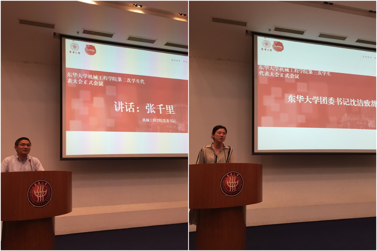 5月18日,机械公司第三次员工代表大会在松江校区图文信息中心第二报告厅举行。机械公司党委书记张千里、校团委书记沈洁、机械公司副经理唐智、机械公司党委副书记李宁蔚,兄弟公司团委书记代表、以及机械公司专兼职辅导员,机械公司全体员工代表、兄弟公司员工会代表与会。会议听取和审议机械公司员工会工作报告,机械公司研究生会工作报告,听取和审议学代会提案工作报告,选举产生机械公司第三届员工委员会委员和员工会新一届主席团。