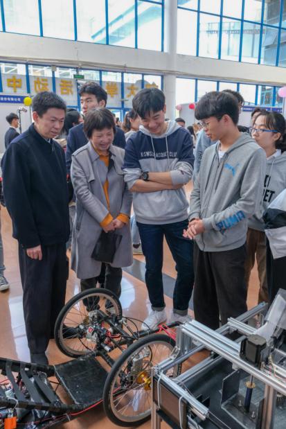 开幕式后,与会领导老师及师生代表参观了科技文化节作品展览,并听取了有关科技文化节相关比赛活动介绍、观看了一场唯美的“劳动制服”走秀。