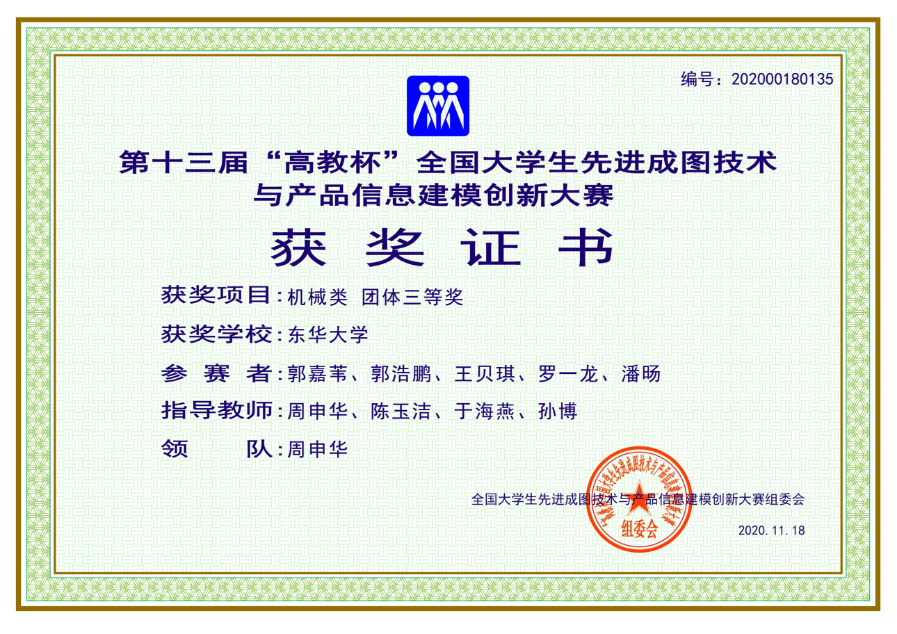 团体三等奖:郭嘉苇、郭浩鹏、王贝琪、罗一龙、潘旸