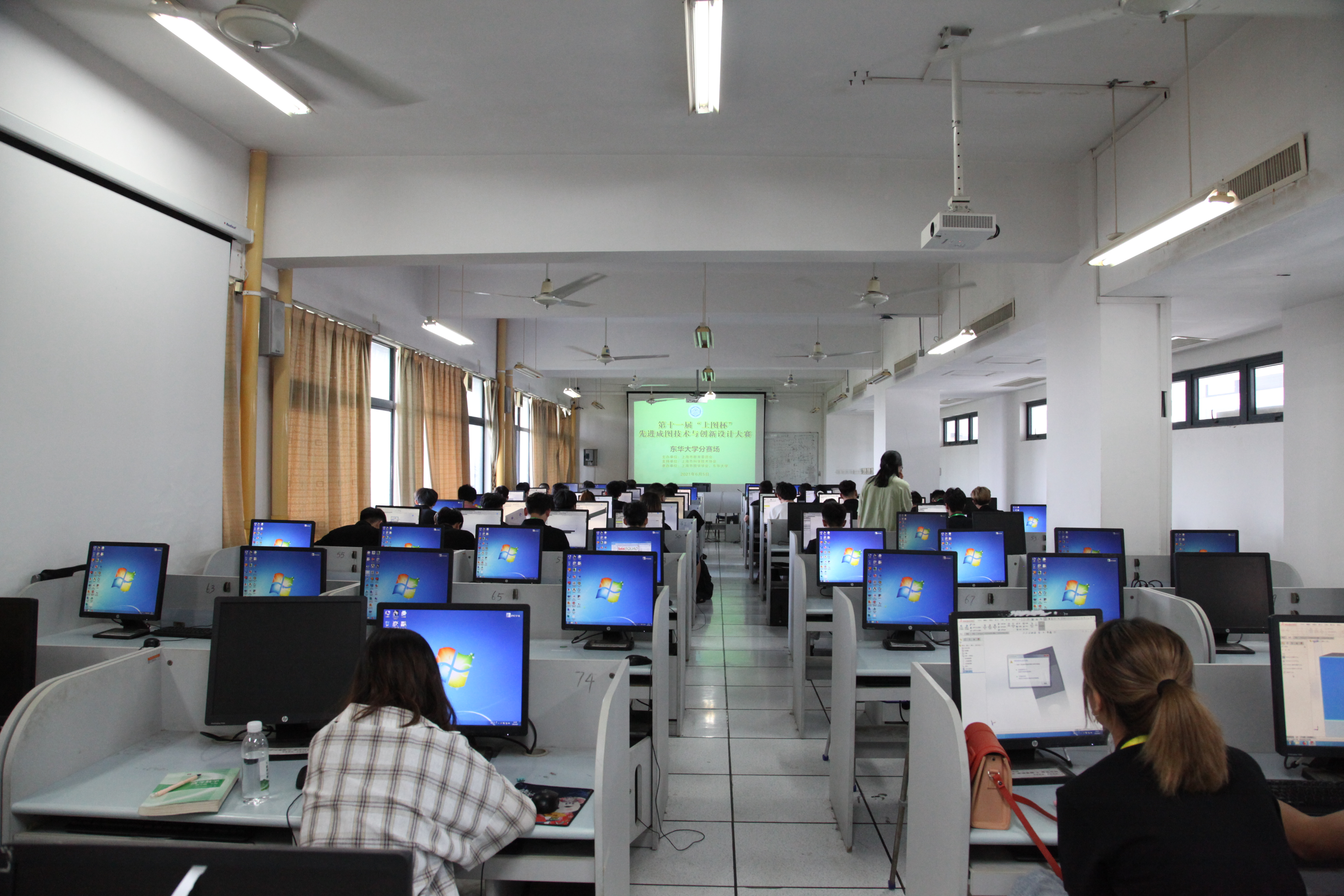 上海市图学学会和太阳成集团tyc33455cc官网的老师与志愿者们组成比赛工作组,为大赛的有序进行做了详细的任务分配与工作部署。虽然大赛一年一度,负责老师已有经验,但依旧认真仔细地布置考场、准备材料,充分落实比赛过程中的每个细节。比赛开始,工作组的老师和志愿者们穿梭考场间维持赛场秩序以及解决考试中出现的问题,努力为考生争取一个良好的考试环境。赛后考生交卷,老师与志愿者们又开始了紧张的收卷、整理会场等收尾工作,在大家的努力下,大赛也画上了一个圆满的句号。