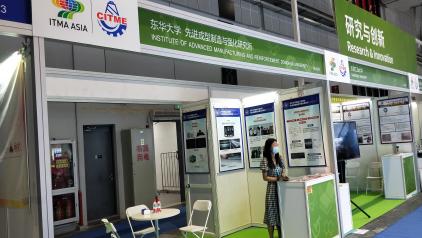 公司组织了一批公司优秀科研成果参加本届展览会,受到与会参观人员的高度关注,其中:“全数字化簇绒地毯织机”成果通过若干个电子罗拉同步控制纱线张力以及喂纱量形成不同高度的绒圈,结合不同颜色纱线的排列组合,提高了企业产能;“数字化经编机系列装备及其智能生产关键技术”成果实现了工艺参数数字化控制、成圈三参数数字化调控,实现了智能故障诊断和远程运维等功能;“增材印花鞋面及其运动鞋自动化生产线”成果原创开发了3D增材印花一体化鞋面成型工艺,研发成功了冷粘、连帮注塑运动鞋机器人自动化生产线;“高档织针研发系列产品”成果已被织针行业推广应用,有力推动了电脑横机移圈针、棉袜针和高速经编机槽针的国产化进程;“金属强化及涂层制备技术”成果依托于国家863项目、上海市重点攻关项目等,极大提高了热轧带钢用铸铁轧辊的使用寿命;“制造全流程的数据可视化及交互系统”成果基于业务需求与精益生产理念,制定了执行系统中生产执行、质量管理、设备管理、仓储管理、运维管理的规则与流程,有效降低了制造资源浪费,实现了制造全流程的数据可视化及交互;“织物疵点在线检测系统”以计算视觉为技术核心,研发了影像检测剔除系统、封口影像检测剔除系统、材料定位影像检测控制系统,填补了国内卫生用品在线检测技术空白;“新兴纺织服装产业集聚区网络协同制造集成系统”成果以多品种、小批量、个性化定制纺织服装产品生产为对象,研发了基于工业互联网模式的智能工厂应用示范并实现区域内推广;“基于多孔介质干燥理论的针织物烘干过程数值模拟及参数调控”成果依托国家重点研发计划,为平幅织物烘干工艺的改进和设备研制提供了解决方案;“服装生产线数字孪生系统”成果依托上海市经信委项目,促进了服装生产线管理效率的提高;“化纤长丝外观在线智能检测系统”成果攻克了化纤长丝外观视觉检测技术,实现了连续、高效的在线智能检测,突破了化纤长丝卷装外观智能检测系统关键技术并产业化,提升了行业的生产效率;“全自动喷丝板智能化检测及数据管理系统”成果利用机器视觉检测技术,实现了喷丝板孔全自动检测。