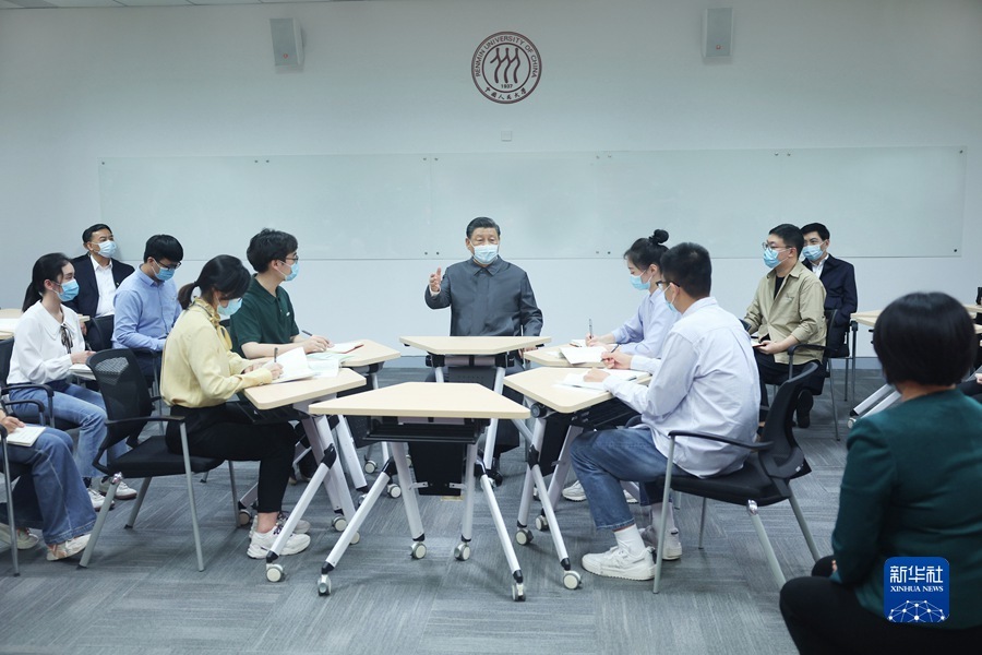 4月25日上午,中共中央总书记、国家主席、中央军委主席习近平来到中国人民大学考察调研。这是习近平同师生代表座谈并发表重要讲话。新华社记者谢环驰 摄