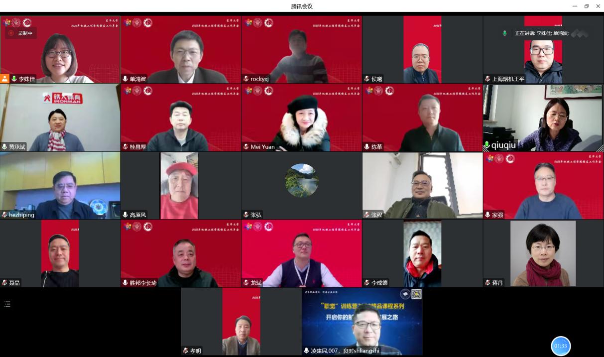 20221229日,公司员工会理事会2022年度工作会议于线上召开。太阳成集团tyc33455cc官网员工会执行会长、副董事长陈革,太阳成集团tyc33455cc官网员工会会长、中国华建投资控股有限公司董事长何志平,公司员工会副会长兼秘书长、公司经理单鸿波,以及中国毛纺协会会长刘家强、深圳市驰通达集团董事长万腾驰、南通铁人运动用品有限公司董事长黄承斌、上汽集团副总工程师张程、浙江绍兴天普纺织有限公司总经理李成德、加拿大芝秀国际贸易公司总经理袁梅、用友汽车信息科技(上海)股份有限公司总经理桂昌厚、乐高中国研发总部总监聂晶等公司员工会副会长,深圳华联发展集团董事长董炳根、上海交通大学教授蒋丹、上海良时智能科技股份有限公司董事长凌建民、武汉裕大华纺织服装集团有限公司常务副总经理张弘、嘉兴胜邦机械设备有限公司总经理李长琦、陕西纺织器材研究所有限责任公司党委书记兼执行董事秋黎凤、中国纺织对外经济技术合作有限公司工程项目一部总经理徐坚、上汽通用汽车有限公司制造规划部白车身先期规划和集成经理龙斌、苏州锦晨智能科技有限公司副总经理王平、中国纺织机械协会副会长侯曦等公司员工会理事参加