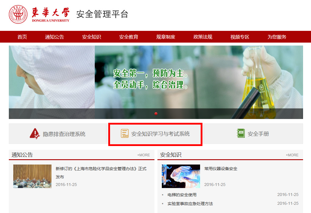 1、网址:https://aqgl.dhu.edu.cn(注意:必须在校园网内访问,如在家或宿舍内访问,需要用VPN;浏览器建议使用360极速模式或Google  Chrome )。