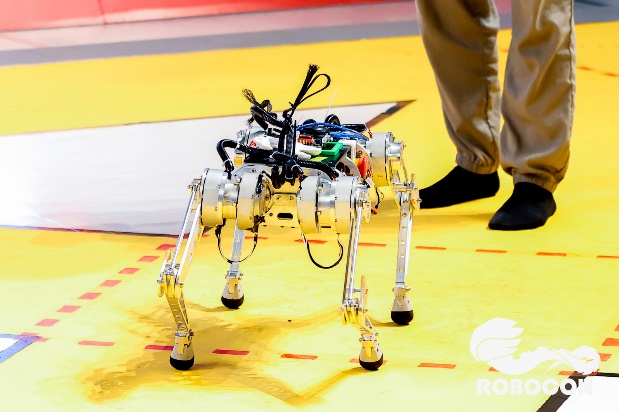 机器马术赛需要参赛队伍综合运用机械设计、加工装配、自动控制、计算机视觉等多方面的知识和技术自行设计并制作一台四足机器人,在3分钟内进行机器马行进、爬坡、弹跳等动作展示,以检验参赛队伍对于机器马重心及摩擦力、关节自由度、控制策略等设计水平。