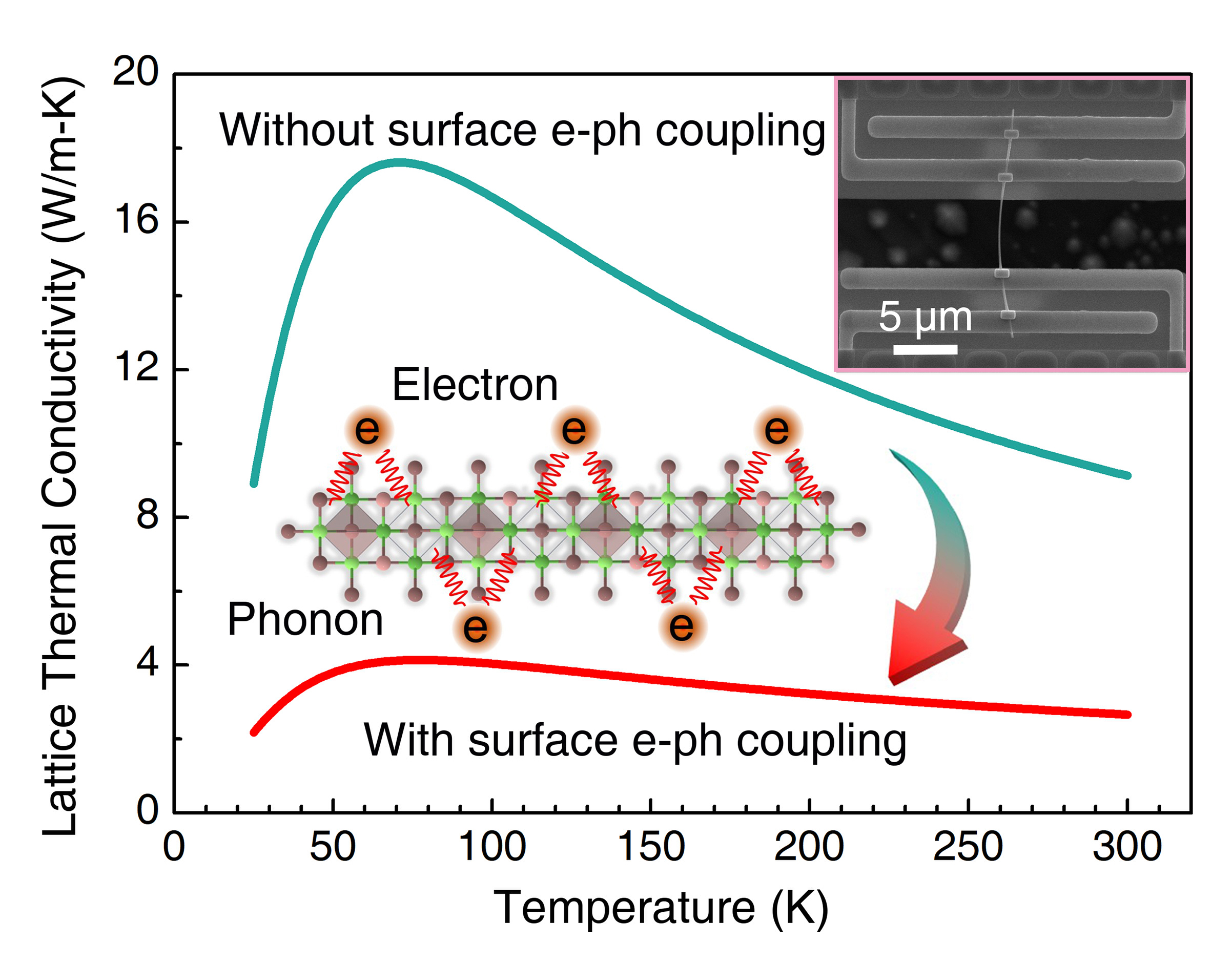 Applied Physics Letters上,研究团队揭示了表面电子-声子相互作用可显著抑制InAs纳米线的晶格热导率,室温下降幅度高达73%。这一发现为通过表面态工程调控半导体热输运提供了全新思路,为新一代高效热电与微纳电子器件的设计奠定了实验基础。(https://doi.org/10.1063/5.0277012)