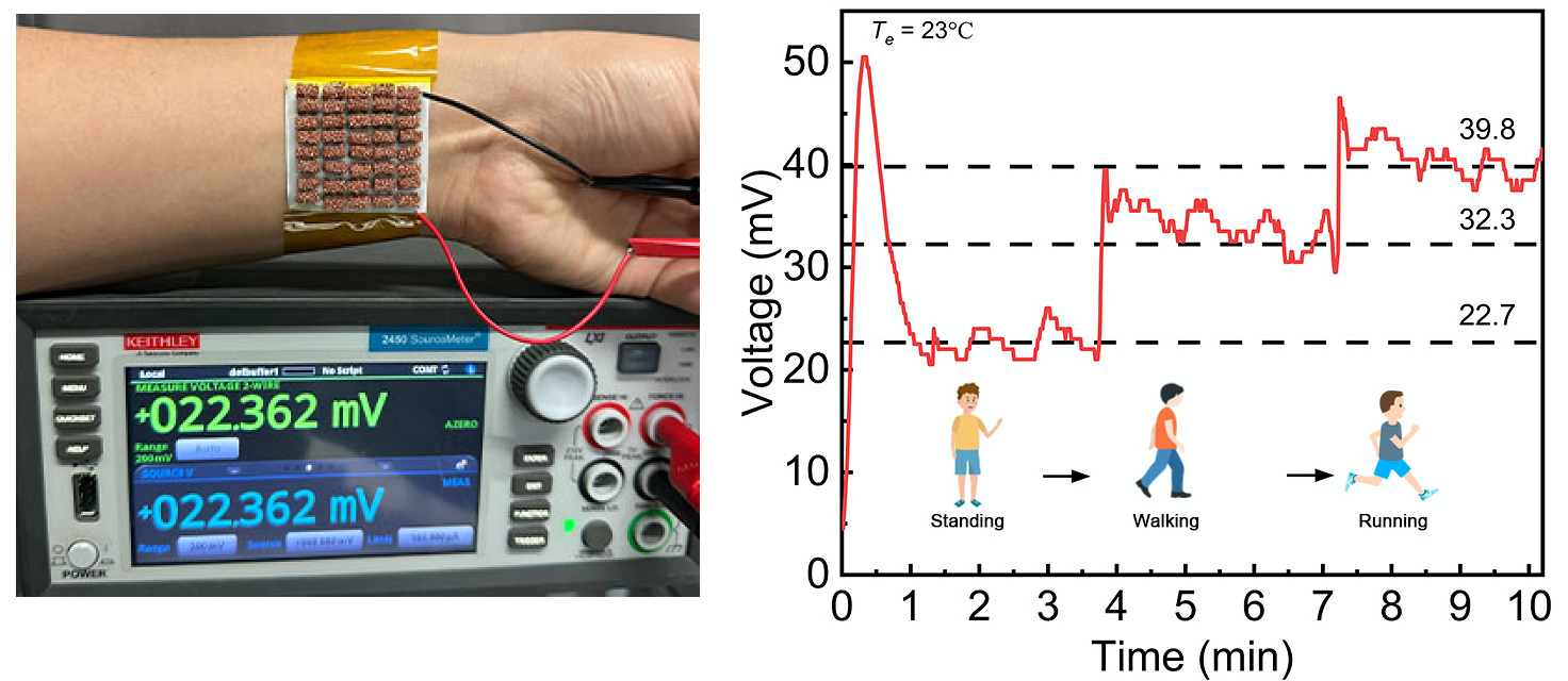 Thermal Science and Engineering Progress上,团队设计并制备了一种集成式泡沫铜电极与嵌入式复合柔性基底的柔性热电发电器,实现了高效人体热能收集,在运动过程中持续稳定供能,展示了在可穿戴电子、健康监测和自供能系统中的巨大应用潜力。(https://doi.org/10.1016/j.tsep.2025.103750)