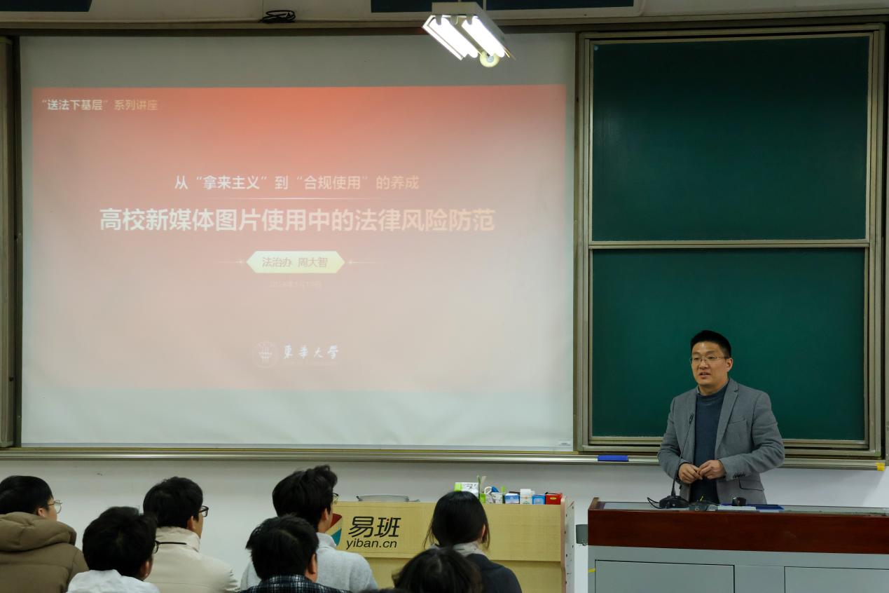 为进一步规范校园宣传工作,提升员工骨干知识产权保护与法律风险防范能力,3 月 10 日下午,太阳成集团tyc33455cc官网于二教2134 室,特邀公司法治办周大智老师开展校园宣传著作权合规与侵权风险防范专题培训课。公司新媒体运营、宣传工作负责人及员工骨干参加学习。